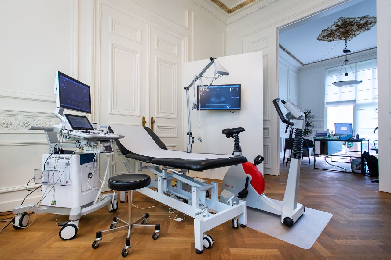 Een ambulant cardiologisch onderzoek omvat altijd een volledig klinisch (lichamelijk) onderzoek, meestal een elektrocardiogram (ecg), vaak een echocardiografie en eventueel een inspanningsproef. Daarnaast kunnen wij in samenwerking met het ziekenhuis een uitgebreide reeks aanvullende onderzoeken plannen, waaronder CT van het hart, MRI van het hart, coronarografie, elektrofysiologisch onderzoek, slokdarm-echocardiografie en echocardiografie onder inspanning.